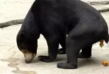 马来熊,是食肉目熊科马来熊属哺乳动物。体胖颈短,眼睛和耳朵小;头部短圆;全身乌黑光滑;鼻唇周为棕黄色,裸露无毛;眼圈为灰褐色,趾基部连有短蹼;胸斑中央有一个毛旋,颈部周围的一圈皮肤极松弛,…全部>>