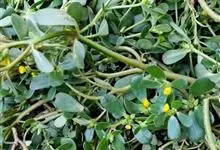 马齿苋,马齿苋科马齿苋属一年生草本植物,全株无毛;茎平卧或斜倚,铺散,多分枝,圆柱形,淡绿或带暗红色;叶互生或近对生,扁平肥厚,倒卵形,上面暗绿色,下面淡绿或带暗红色;花瓣黄色,倒卵形;萼片绿色,…全部>>