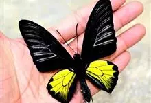金裳凤蝶是凤蝶科、裳凤蝶属的动物。金裳凤蝶身体呈黑色,头、颈和胸侧有红毛,腹部有黑黄两色相间条纹,雄蝶前翅黑色,具黑天鹅绒光泽,各脉两侧灰白色,后翅金黄色,各室外缘有等腰三角形黑斑1枚,斑内侧有晕,…全部>>