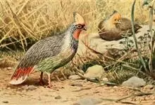 血雉雉科血雉属鸟类,别名血鸡、松花鸡,血雉的雄鸟大覆羽、尾下覆羽、尾上覆羽、脚、头侧、腊膜为红色,故称血雉。其别名甚多,各地皆异。在甘肃,因其胸侧和翅上覆羽沾绿,被称为“绿鸡”;因其羽毛形似柳叶,…全部>>