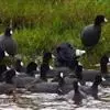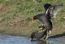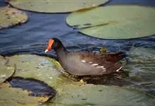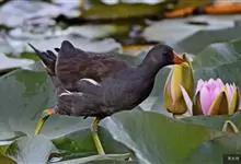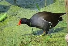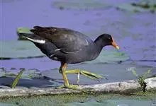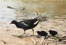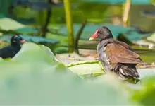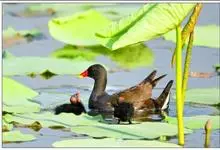 黑水鸡:是鹤形目、秧鸡科的鸟类,共有12个亚种。中型涉禽,体长24-35厘米。嘴长度适中,鼻孔狭长;头具额甲,后缘圆钝;嘴和额甲色彩鲜艳。翅圆形,第2枚初级飞羽最长,或第2枚和第3枚初级飞羽等长,…全部>>