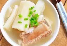 排骨汤,是用猪、牛、羊等动物剔肉后剩下的肋骨和脊椎骨制作的一道家常汤品。排骨除含蛋白、脂肪、维生素外,还含有大量磷酸钙、骨胶原、骨粘蛋白等,…全部>>
