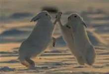 北极兔, 是兔科、兔属的哺乳动物。北极兔体型巨大,头比一般的兔子大且长,耳朵较小,腿长,四肢非常有力灵活,夏季身体背面浅灰色,冬季身体背面白色。北极兔属于群居动物,鼻子、耳朵灵敏,不羞怯胆小,易于驯服,…全部>>