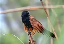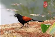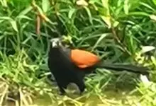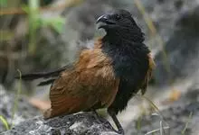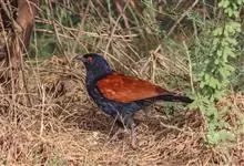 褐翅鸦鹃,是鹃形目鸦鹃科鸦鹃属的鸟类。褐翅鸦鹃的身体为黑色;头颈和胸带蓝紫色金属光泽并具黑亮的羽干纹,下胸至腹部泛金属绿光泽;两翼和肩部为棕栗色,外侧飞羽具暗色羽端,尾羽闪铜绿色光泽;虹膜赤红色,…全部>>