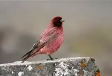 藏朱雀:全长约17-18厘米。雄鸟头部深红色具光辉,喉部暗红色具白色点斑;背部灰白色,各羽具玫瑰红色羽端,形成许多斑纹;腰部淡玫瑰红色;翅暗褐色,沾灰白,羽端沾玫瑰红或灰白色;尾暗棕色,端缘玫瑰红色…全部>>
