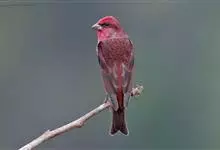 酒红朱雀小型鸟类,体长13~15厘米。雄鸟通体深红色,头部深朱红或棕红色,下背和腰玫瑰红色,眉纹粉红色而具丝绢光泽。两翅和尾黑褐或灰褐色、具暗红色狭缘,内侧两枚三级飞羽具淡粉红色先端。…全部>>