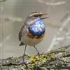 蓝点颏亦称“蓝喉歌鸲”,通称蓝靛颏儿。身体大小和麻雀相似,体长12-13厘米,体重17-18克。头部、上体主要为土褐色。眉纹白色。尾羽黑褐色,基部栗红色。颏部、喉部辉蓝色,下面有黑色横纹。下体白色。…全部>>