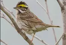 黑顶麻雀:为雀科麻雀属的鸟类。体重24-35克,体长144-167毫米,是一种中等体型的麻雀。繁殖期雄鸟头顶有黑色的冠顶纹至颈背,眼纹及颏黑,眉纹及枕侧棕褐,脸颊浅灰。上体褐色而密布黑色纵纹。…全部>>