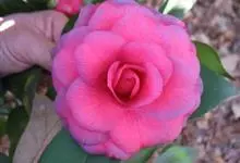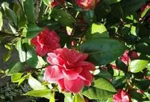 滇山茶:灌木至小乔木,有时高达15米,嫩枝无毛。叶阔椭圆形,上面干后深绿色,发亮,下面深褐色,无毛,侧脉6-7对,边缘有细锯齿。花顶生,红色,直径10厘米,无柄;苞片及萼片10-11片,花瓣红色,…全部>>