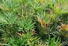 十大功劳 Fedde),小檗科十大功劳属常绿灌木植物。叶子较大且较多,呈椭圆形,绿色,表面光滑无毛,叶柄较长;花朵较小,呈多边形,黄色,花瓣对称分布,表面有绒毛;果实呈圆形,褐色,…全部>>