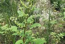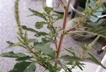 反枝苋是苋科苋属的一年生草本植物。株高达1米;茎密被柔毛;叶菱状卵形或椭圆状卵形,先端锐尖或尖凹,两面及边缘被柔毛,下面毛较密;穗状圆锥花序,顶生花穗较侧生者长;花被片长圆形或长圆状倒卵形,…全部>>