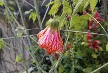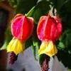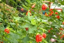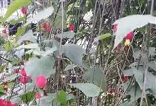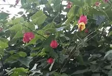 红萼苘麻是锦葵科、苘麻属常绿软木质灌木,叶绿色,长5-10厘米,心形,叶端尖,叶缘有钝锯齿,有时分裂,有细细的叶柄;叶互生,掌状叶脉;花单生于叶腋,具长梗,下垂;花萼红色,半套着大约4厘米长的花瓣,…全部>>