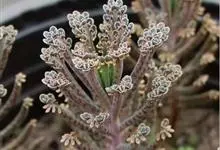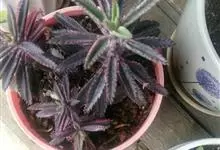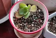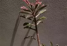 棒叶落地生根是景天科、落地生根属植物。茎直立、粉褐色。叶圆棒形,上表面有沟、粉色,有红褐斑。叶片交互对生,交叉排列成十字形。叶端锯齿上长有很小的幼株、落地后即可生根成活。原产非洲马达加斯加。…全部>>