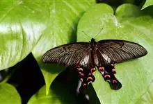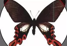 玉斑凤蝶Papilio helenus 别名白纹凤蝶,是凤蝶科凤蝶属美凤蝶亚属大型种类。雌雄同型;体翅皆黑色,后翅正面中室外有3个并列的白色斑,亚外缘有1列模糊的新月形红色斑,…全部>>
