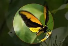 荧光裳凤蝶是凤蝶科裳凤蝶属的一种大型蝴蝶,该物种共有3个亚种。该蝶飞翔的时候姿态优美,前翅黑色,后翅金黄色和黑色交融的斑纹在阳光照射下金光灿灿,显得华贵美丽。幼虫寄主为多种马兜铃属的植物,取食马兜铃…全部>>