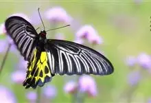 金裳凤蝶是凤蝶科、裳凤蝶属的动物。金裳凤蝶身体呈黑色,头、颈和胸侧有红毛,腹部有黑黄两色相间条纹,雄蝶前翅黑色,具黑天鹅绒光泽,各脉两侧灰白色,后翅金黄色,各室外缘有等腰三角形黑斑1枚,斑内侧有晕,…全部>>
