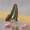 青带凤蝶Graphium sarpedon ,又名青凤蝶,是最普遍的中型凤蝶,飞行速度很快。青带凤蝶的翅膀中央有许多浅蓝色的斑点,很整齐地排列成一条直线。这些斑点由上而下逐渐变大,就像一条青色的带子。全部>>