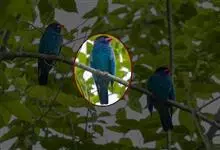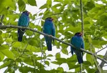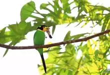 三宝鸟佛法僧科三宝鸟属的鸟类,为佛法僧目三宝鸟属下的一种中小型攀禽,共有10个亚种,体长26-29厘米,体重107-194克。通体蓝绿色,头和翅较暗,呈黑褐色,初级飞羽基部具淡蓝色斑,飞翔时甚明显。…全部>>