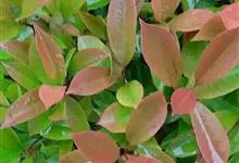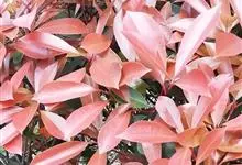 红叶石楠 是蔷薇科,石楠属杂交种,为常绿小乔木或灌木,乔木高可达5米、灌木高可达2米。叶片革质,长圆形至倒卵状、披针形,叶端渐尖,叶基楔形,叶缘有带腺的锯齿,花多而密,复伞房花序,花白色,梨果黄红色,…全部>>