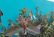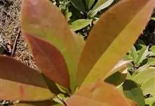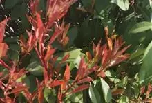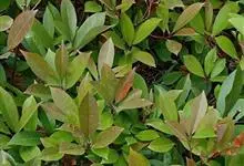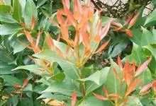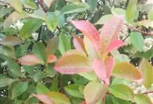 红叶石楠 是蔷薇科,石楠属杂交种,为常绿小乔木或灌木,乔木高可达5米、灌木高可达2米。叶片革质,长圆形至倒卵状、披针形,叶端渐尖,叶基楔形,叶缘有带腺的锯齿,花多而密,复伞房花序,花白色,梨果黄红色,…全部>>