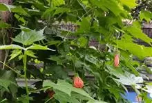 红萼苘麻是锦葵科、苘麻属常绿软木质灌木,叶绿色,长5-10厘米,心形,叶端尖,叶缘有钝锯齿,有时分裂,有细细的叶柄;叶互生,掌状叶脉;花单生于叶腋,具长梗,下垂;花萼红色,半套着大约4厘米长的花瓣,…全部>>