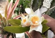 翅萼石斛是兰科石斛属的植物。茎肉质状粗厚,不分枝,干后为金黄色;叶革质,呈长圆形或舌状长圆形;总状花序出自近茎端,花苞片卵形,子房黄绿色,呈三棱形,花有橘子香气,萼囊淡黄色带橘红色,呈角状,花瓣为白色,…全部>>