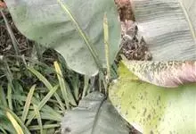 香蕉’),芭蕉科芭蕉属多年生草本植物,植株丛生,有匐匍茎;假茎浓绿有黑色斑点;叶片长圆形,上面为深绿色,无白粉,下面浅绿色;花朵为乳白色或淡紫色;果实呈弯曲的弓状,有棱,果皮为青绿色,…全部>>