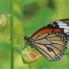 虎斑蝶,Danaus genutia ,是斑蝶属的一种,常见于湿地公园内。雄性虎斑蝶经常伏于吊裙草 上吸食汁液,以制造吸引异性的香气。虎斑蝶翅膀腹面鲜橙色,翅脉和翅边缘黑色,边缘上有两行小白点,…全部>>