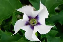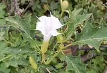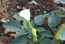 曼陀罗,茄科曼陀罗属一年生大型草本植物,全株光滑。有臭气;叶呈广卯形,边缘具不规则波状浅齿裂;花单生于枝杖间或叶腋,直立,有短梗;花萼是筒状裂片三角形,颜色为白色或淡紫色;果实为蒴果卵状,…全部>>