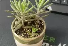 棒叶落地生根是景天科、落地生根属植物。茎直立、粉褐色。叶圆棒形,上表面有沟、粉色,有红褐斑。叶片交互对生,交叉排列成十字形。叶端锯齿上长有很小的幼株、落地后即可生根成活。原产非洲马达加斯加。…全部>>