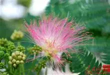 合欢,又名马缨花、绒花树、夜合合等,为豆科合欢属的一种落叶乔木。合欢的树高可达16米,人工特别养护的可达30米,树冠开展;二回羽状复叶,…全部>>