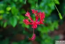 吊灯扶桑 Hook. f.)为锦葵科木槿属的常绿灌木。高达3米;小枝常下垂;叶椭圆形或长圆形,先端尖或短渐尖,基部楔形;花梗细,无毛或具纤毛,中部具节;蒴果长圆柱形;花期全年。因似灯笼高挂,…全部>>