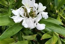 姜花又名野姜花。是姜科姜花属的多年生草本植物,茎高1-2米;叶片长圆状披针形或披针形,叶面光滑,叶背被短柔毛;穗状花序顶生,椭圆形,花芬芳,白色;蒴果卵状三棱形,微黄绿色;种子鲜红色,具橘红色的假种皮。…全部>>