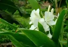姜花又名野姜花。是姜科姜花属的多年生草本植物,茎高1-2米;叶片长圆状披针形或披针形,叶面光滑,叶背被短柔毛;穗状花序顶生,椭圆形,花芬芳,白色;蒴果卵状三棱形,微黄绿色;种子鲜红色,具橘红色的假种皮。…全部>>