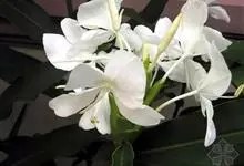 姜花又名野姜花。是姜科姜花属的多年生草本植物,茎高1-2米;叶片长圆状披针形或披针形,叶面光滑,叶背被短柔毛;穗状花序顶生,椭圆形,花芬芳,白色;蒴果卵状三棱形,微黄绿色;种子鲜红色,具橘红色的假种皮。…全部>>