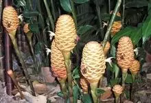 红球姜 Roscoe ex Sm.)是姜科姜属的多年生草木植物。植株高达2米,根茎块状,内部淡黄色,叶披针形或长圆状披针形,无毛或下面被疏长柔毛,无柄或具短柄,苞片覆瓦状排列,初淡绿色,后红色。…全部>>