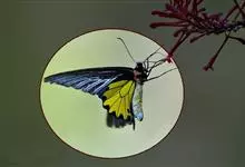 荧光裳凤蝶是凤蝶科裳凤蝶属的一种大型蝴蝶,该物种共有3个亚种。该蝶飞翔的时候姿态优美,前翅黑色,后翅金黄色和黑色交融的斑纹在阳光照射下金光灿灿,显得华贵美丽。幼虫寄主为多种马兜铃属的植物,取食马兜铃…全部>>