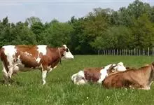 西门塔尔牛是偶蹄目牛科牛属哺乳动物。 体躯长,呈圆筒状,肌肉丰满;头较长,面宽,颈长中等,角较细而向外上方弯曲,尖端稍向上;前躯较后躯发育好,胸深,尻宽平,四肢结实,大腿肌肉发达,乳房发育好。…全部>>