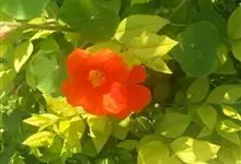 旱金莲是旱金莲科旱金莲属蔓生一年生草本植物。叶互生,叶柄向上扭曲,盾状,叶圆形,具波状浅缺刻,下面疏被毛或有乳点;花黄、紫、桔红或杂色,花托杯状,花瓣为圆形,边缘具缺刻;果实为扁球形;花果期6-10月,…全部>>
