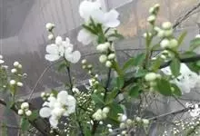 喷雪花为蔷薇科 珍珠梅属 植物。因其开花时花朵密集,一片雪白,故得此名。又因其叶形似柳叶,花白如雪,又称“雪柳”。全部>>