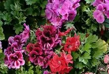 家天竺葵是牻牛儿苗科、天竺葵属多年生草本;株较高;茎直立,基部木质化,被开展长柔毛;叶互生三角状,宽卵形或肾形,基部心形或平截,具不规则锐锯齿;花梗长柔毛和腺毛;萼片披针,花冠粉红、淡红、深红或白色。…全部>>
