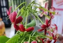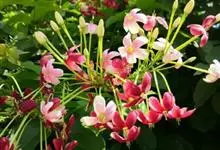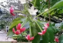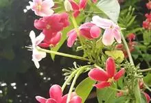使君子 Jongkind)是使君子科、使君子属攀援灌木,叶对生,椭圆形,两面均被灰白色柔毛。穗状花序,倒挂下垂。花期夏秋。果有五棱,熟时黑色,种子白色。分布于印度、缅甸、菲律宾和中国。喜温润,深根性,…全部>>