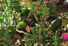 千果榄仁是使君子科诃子属植物,常绿乔木,高可达35米,小枝圆柱状,叶对生,厚纸质;叶片长椭圆形,侧脉两面明显,叶柄较粗,大型圆锥花序,顶生或腋生,花极小而数,两性,红色,小苞片三角形,宿存;萼筒杯状…全部>>