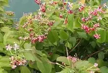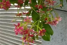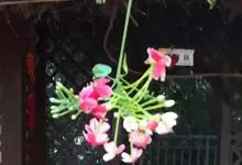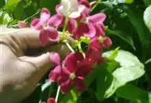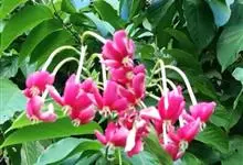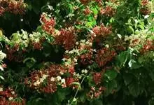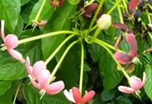 使君子 Jongkind)是使君子科、使君子属攀援灌木,叶对生,椭圆形,两面均被灰白色柔毛。穗状花序,倒挂下垂。花期夏秋。果有五棱,熟时黑色,种子白色。分布于印度、缅甸、菲律宾和中国。喜温润,深根性,…全部>>