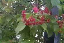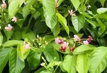 使君子 Jongkind)是使君子科、使君子属攀援灌木,叶对生,椭圆形,两面均被灰白色柔毛。穗状花序,倒挂下垂。花期夏秋。果有五棱,熟时黑色,种子白色。分布于印度、缅甸、菲律宾和中国。喜温润,深根性,…全部>>