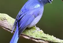 棕腹大仙鹟:体重24-28克,体长15-17厘米,是一种小型的色彩亮丽的鹟。雄鸟上体深蓝,下体棕色,脸黑,额、颈侧小块斑、翼角及腰部亮丽闪辉蓝色。与棕腹仙鹟易混淆,区别在色彩较暗。雌鸟灰褐,…全部>>