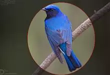 大仙鹟:体重34-38克,体长20-2厘米。是一种体型较大的深色鹟。雄鸟上体蓝色,头顶、颈侧条纹、肩块及腰部辉蓝,下体黑色。雌鸟橄榄褐色,头顶蓝灰,颈侧具闪辉浅蓝色块,喉具皮黄色三角形块斑。…全部>>