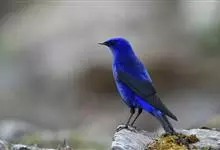 蓝大翅鸲是鹟科、大翅鸲属小型鸟类,体长19-21厘米。两翅尖长。雄鸟通体鲜紫蓝色具金属光泽。两翅和尾黑色。雌鸟上体灰褐色,头、颈、翕具棕白色纵纹,翅上有白色翅斑。虹膜暗褐色,嘴、脚黑色。…全部>>