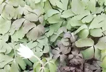 天葵 Makino)是毛茛科天葵属多年生小草本植物,块根长达2厘米,外皮棕黑色。茎高可达32厘米,基生叶为掌状三出复叶;叶片轮廓卵圆形至肾形,小叶扇状菱形或倒卵状菱形,两面均无毛;叶柄长可达12厘米,…全部>>