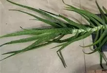 多叶芦荟:是一种无茎多浆植物。每株是一个独立单生莲座丛,植株直径达高30厘米,宽90厘米立。叶呈莲座状螺旋形排列,翠绿色至灰绿色,肉质柔软,多汁肥厚。叶缘有不规则锯齿。成型后每株130-150枚叶片,…全部>>